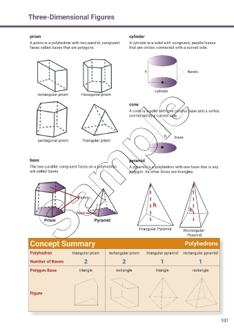 A prism is a polyhedron with two parallel, congruent A cylinder is a solid with congruent, parallel bases