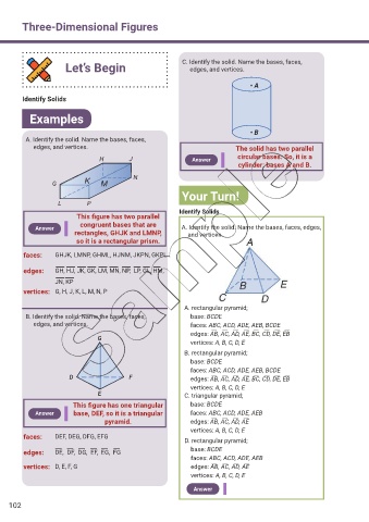 Let’s Begin C. Identify the solid. Name the bases, faces,