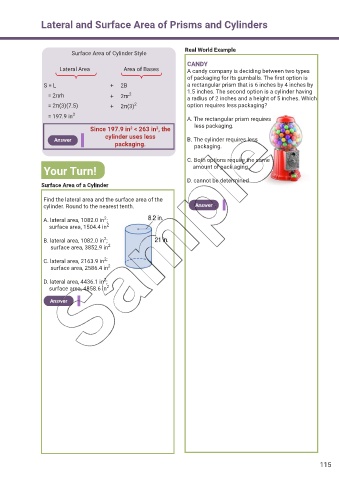 = 2πrh + 2πr 2 a radius of 2 inches and a height of 5 inches. Which