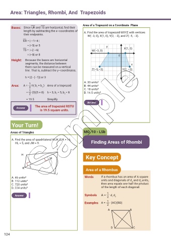 length by subtracting the x–coordinates of A. Find the area of trapezoid WXYZ with vertices