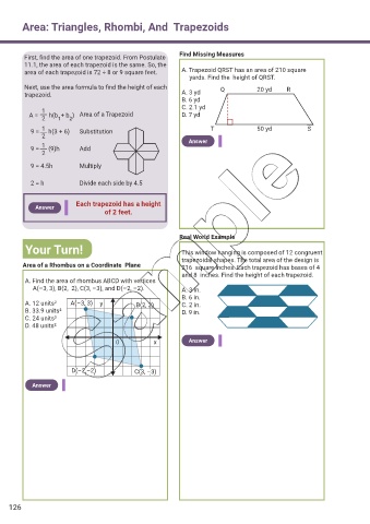area of each trapezoid is 72 ÷ 8 or 9 square feet. A. Trapezoid QRST has an area of 210 square