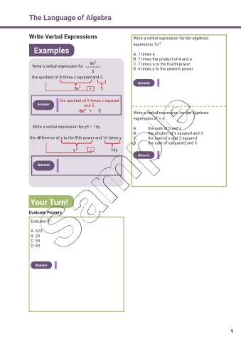 8x² ÷ 5 Write a verbal expression for the algebraic