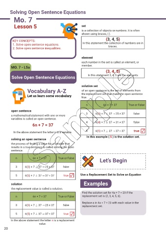 Solve Open Sentence Equations In this statement 3, 4, 5 are the elements