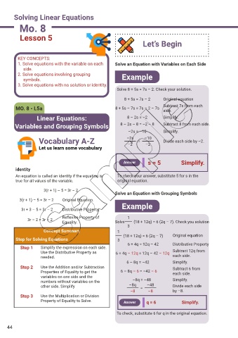 1. Solve equations with the variable on each Solve an Equation with Variables on Each Side