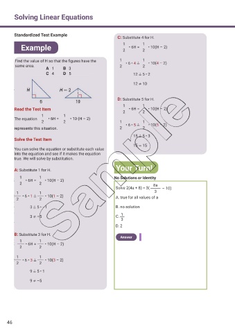 • 6 • 1 ≟ • 10(1 – 2) A. true for all values of a
