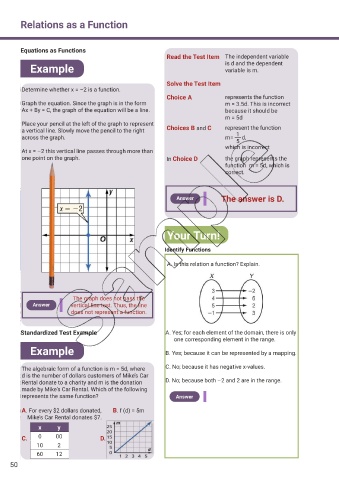 Standardized Test Example A. Yes; for each element of the domain, there is only