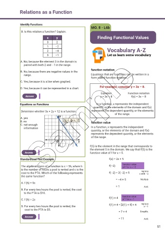 cost to the PTA. Which of the following represents f(–2) = 2(–2) + 5 x with –2