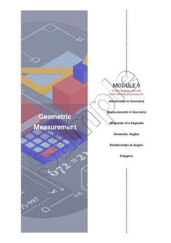 MODULE 9 In this module, you will learn the following lessons: Introduction to Geometry Measurements in Geometry Geometric Midpoints of a Segment Measurement Geometry: Angles Relationships in Angles Polygons