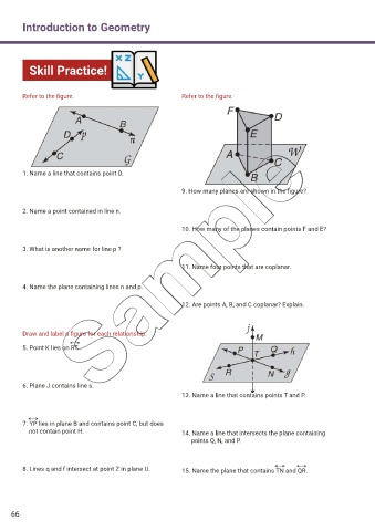 8. Lines q and f intersect at point Z in plane U. 15. Name the plane that contains TN and QR.