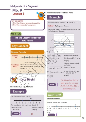 1. Find the distance between two points. Find the distance between E(–4, 1) and F(3, –1).