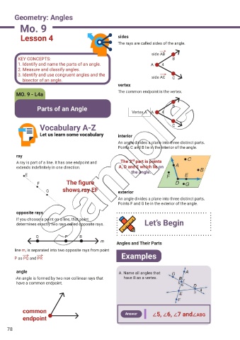 1. Identify and name the parts of an angle. A 4