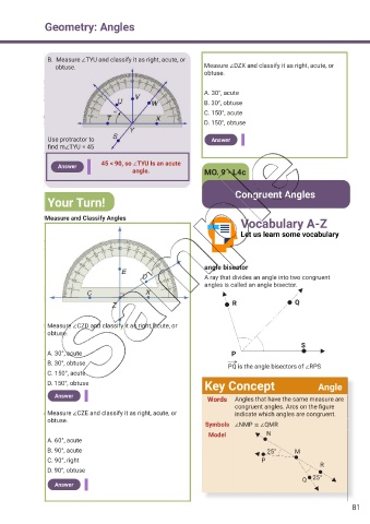 Measure ∠CZE and classify it as right, acute, or indicate which angles are congruent.