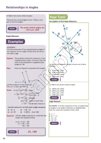 Let the measure of one angle be x. B. Name two acute vertical angles.