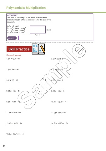 13. (3b + 3)(3b – 2) 14. (2m + 2)(3m – 3)