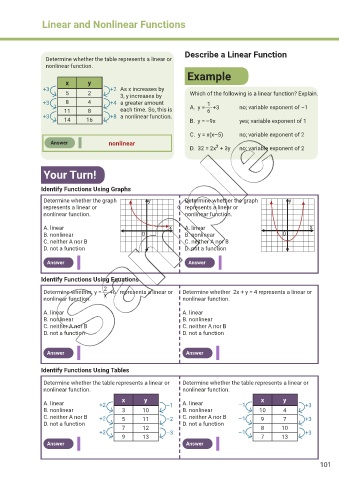 5 2 3, y increases by Which of the following is a linear function? Explain.