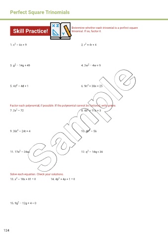 13. x – 18x + 81 = 0 14. 4p + 4p + 1 = 0