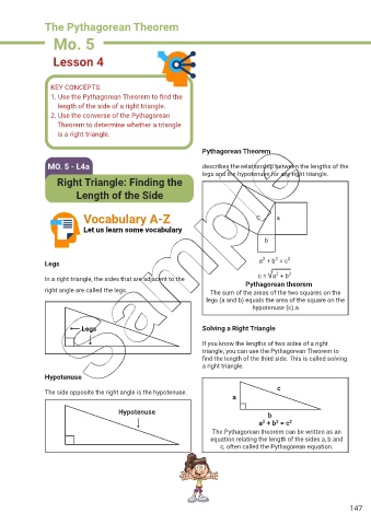 legs and the hypotenuse for any right triangle.
