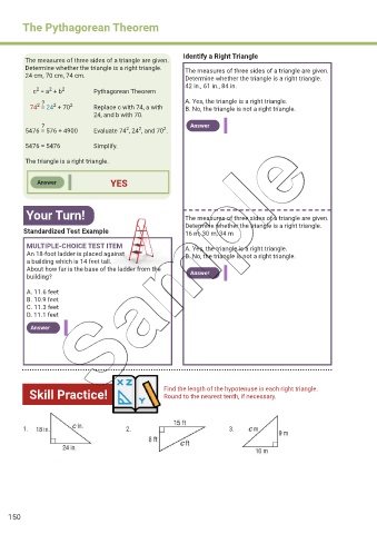 MULTIPLE-CHOICE TEST ITEM A. Yes, the triangle is a right triangle.