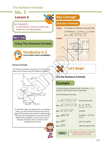 lengths on a coordinate plane. Words The distance d between two points with