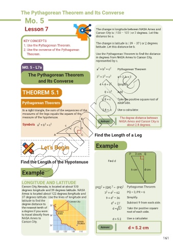 Theorem. Use the Pythagorean Theorem to f nd the distance