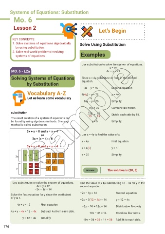 Vocabulary A-Z 4(4y) – y = 75 x = 4y