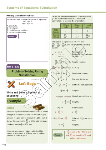 Inf nitely Many or No Solutions Let x = the number of ounces of 18-karat gold and