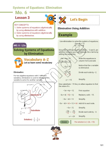 Solving Systems of Equations Since the coef cients of the x terms, –3 and 3, are