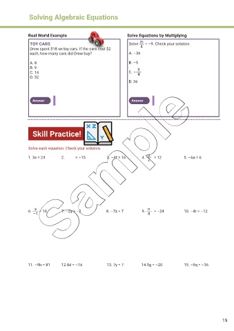 1. 3x = 24 2. = –15 3. –4f = 16 4. = 12 5. –6a = 6