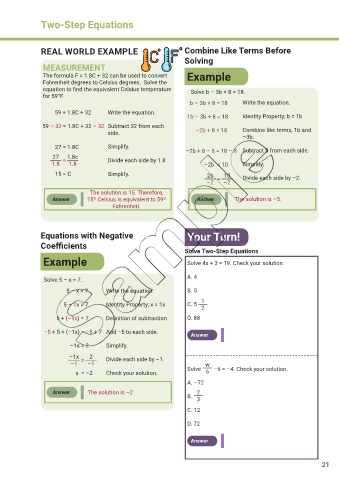 equation to f nd the equivalent Celsius temperature Solve b – 3b + 8 = 18.