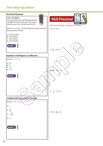 Solve 19 + 0.10x = 23.30 to f nd how many minutes 1. 3x + 10 = 1