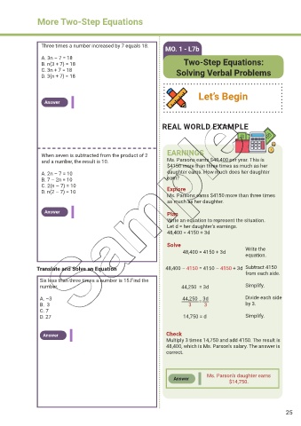 B. n(3 + 7) = 18 Two-Step Equations: