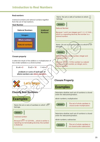 Classify Real Numbers Determine whether each set of numbers is closed