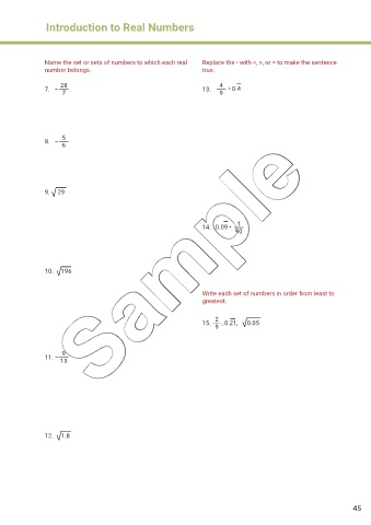 Name the set or sets of numbers to which each real Replace the • with <, >, or = to make the sentence