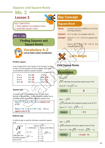 Example Since 5 • 5 = 5 = 25, 5 is a square root