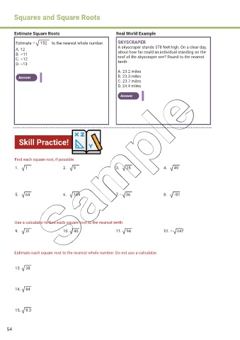 Estimate each square root to the nearest whole number. Do not use a calculator.