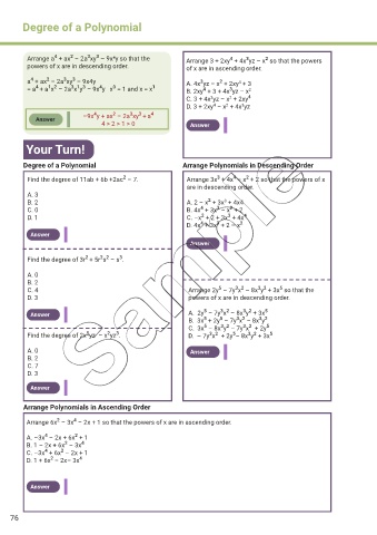 Degree of a Polynomial Arrange Polynomials in Descending Order