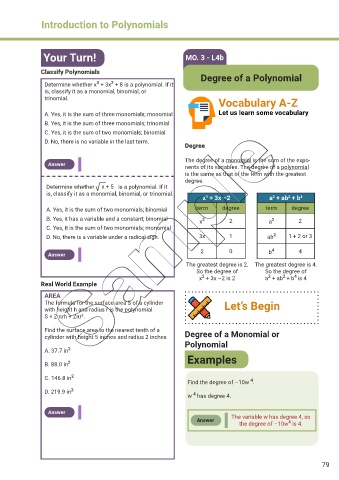 A. Yes, it is the sum of three monomials; monomial Let us learn some vocabulary
