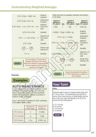 8.75 = 5.0 + 0.5w Simplify. 0.35(2) + 1.0(g) = 0.50(2 + g)