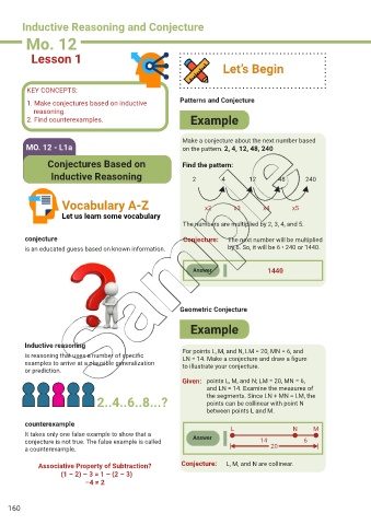 is reasoning that uses a number of specific For points L, M, and N, LM = 20, MN = 6, and