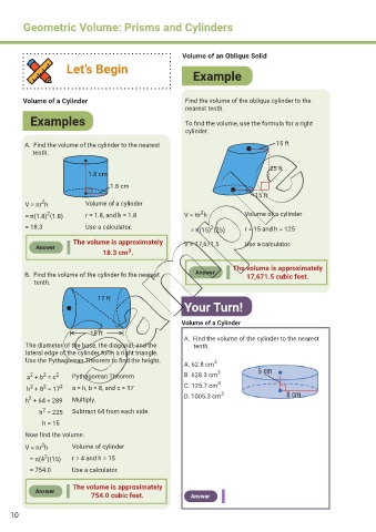 a + b = c 2 Pythagorean Theorem B. 628.3 cm 3 3