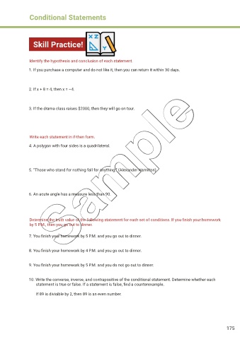 10. Write the converse, inverse, and contrapositive of the conditional statement. Determine whether each