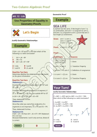 5. m arm 3 = 22 cm 5. Transitive Property