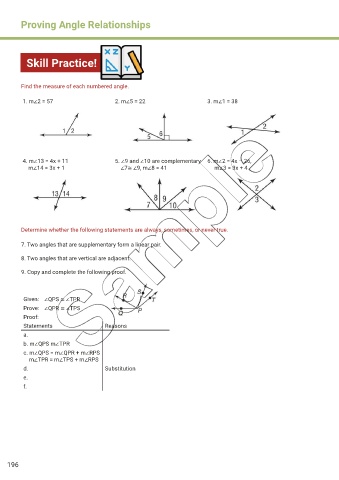 4. m∠13 = 4x + 11 5. ∠9 and ∠10 are complementary 6. m∠2 = 4x – 26,