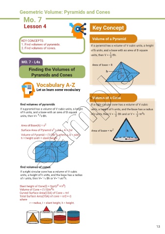 of r units, then V= 1/3 Bh or V= 1/3πr h.