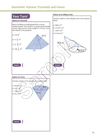 a base edge of 8 feet and a height of 6.5 feet. Find B. 27,463.2 m