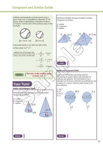 2.9 inches. Find the ratio of the surface areas of the A. similar