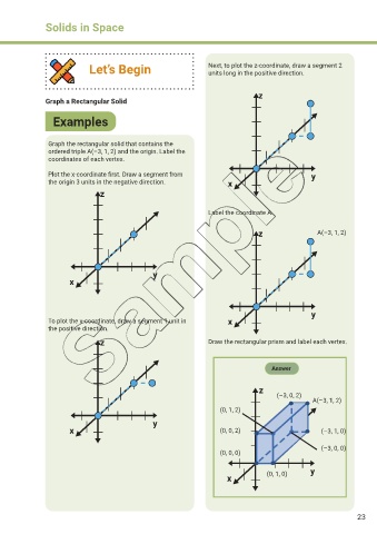 ordered triple A(–3, 1, 2) and the origin. Label the