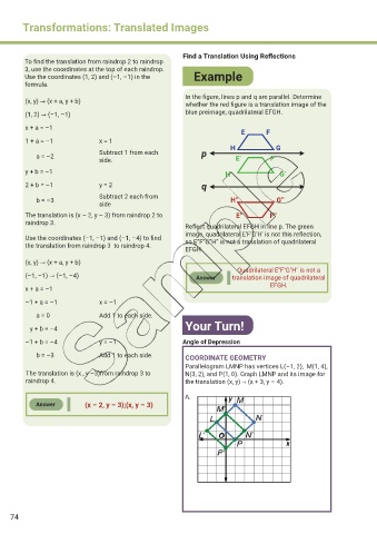 Use the coordinates (–1, –1) and (–1, –4) to find so E’’F’’G’’H’‘ is not a translation of quadrilateral