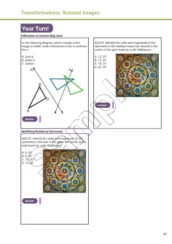 image of ΔABC under reflections in line m and then symmetry in the medium-sized star directly in the
