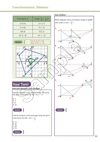 E(–8, 4) E'(–2, 1) with center C and r = ?